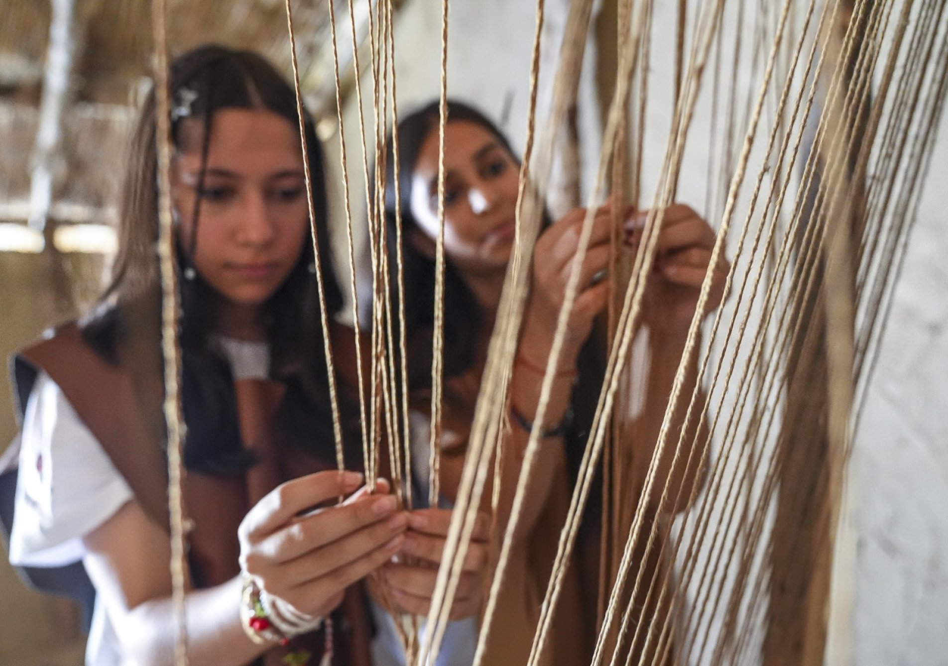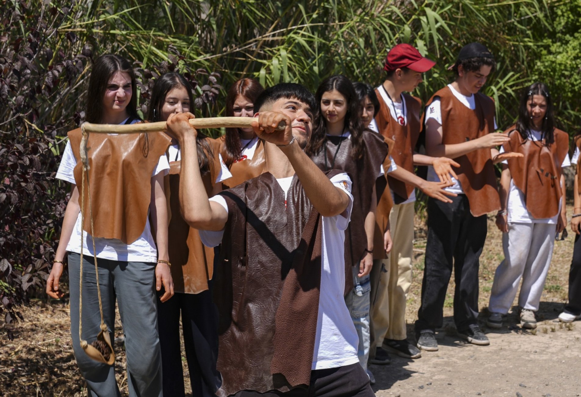 Öğrencilerin ziyaretlerinden biri de Bornova ilçesindeki 8 bin 500 yıllık Yeşilova Höyüğü oldu. Buradaki antik dönem yaşamını deneyimleyen gençler, deri kıyafetler giyerek buğday öğüttü, sapan attı ve kil ile kendi tasarımlarını yaptı.